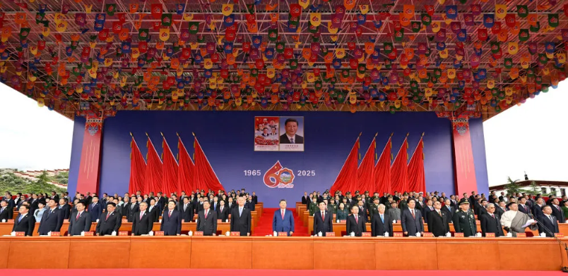 王沪宁发表讲话。他说,1965年9月,在党中央亲切关怀和党的民族政策光辉照耀下,西藏自治区宣告成立。这是西藏发展史上具有划时代意义的大事,巩固了西藏和平解放和民主改革的伟大成果,实现了西藏社会制度的历史性跨越。60年来,西藏经济社会全面发展,民族区域自治制度成功实践,民族团结日益巩固,各族人民生活蒸蒸日上,充分展现了中国共产党领导的坚强力量,充分展现了我国社会主义制度的显著政治优势。
