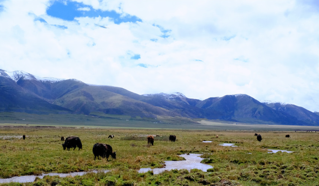 盛夏,雪山、牦牛、青草,和谐相依的玉树巴塘草原
