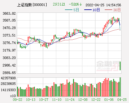 金融界4月25日消息 周一A股三大指数低开低走,早盘市场震荡下挫,沪指频频考验3000点整数关口,地产、金融异动“护盘”,深成指、创业板指盘中一度跌超3%,午前跌幅略有收窄;午后A股再度走弱,沪指击穿3000点并跌超5%刷新2020年7月以来新低,深成指跌超6%。