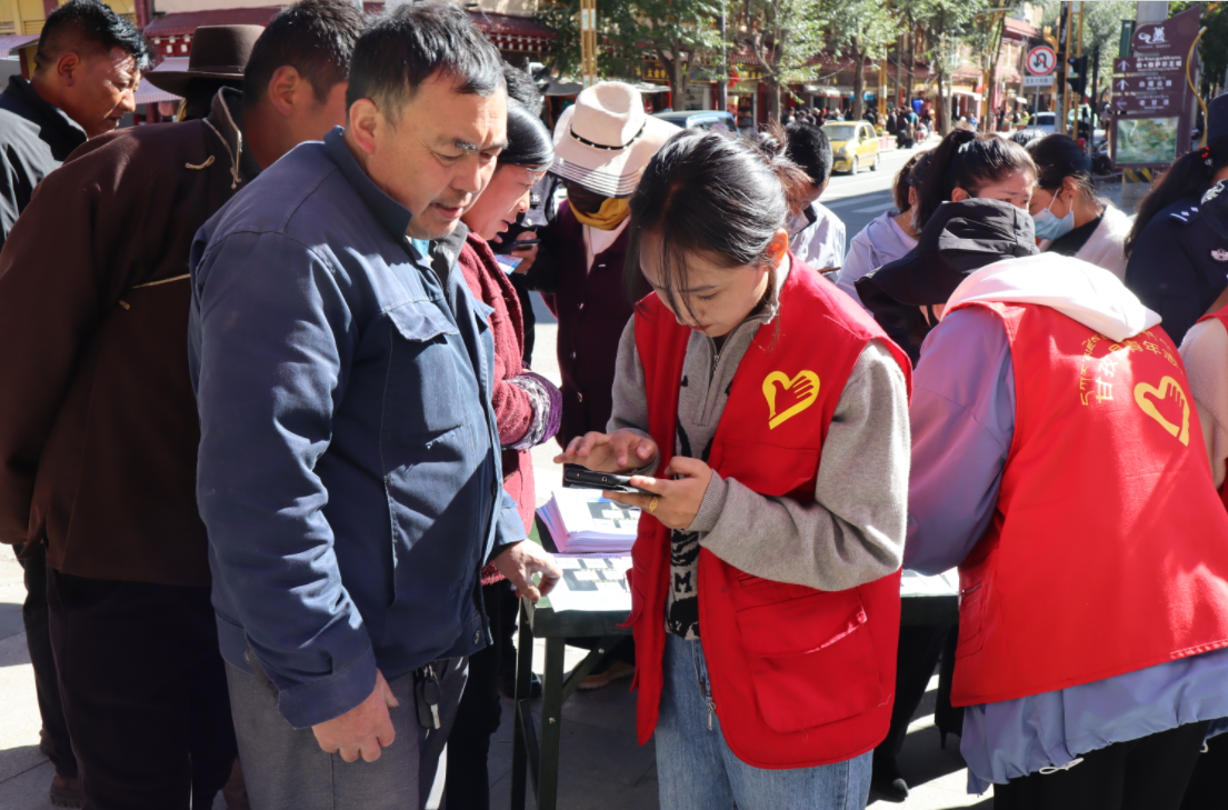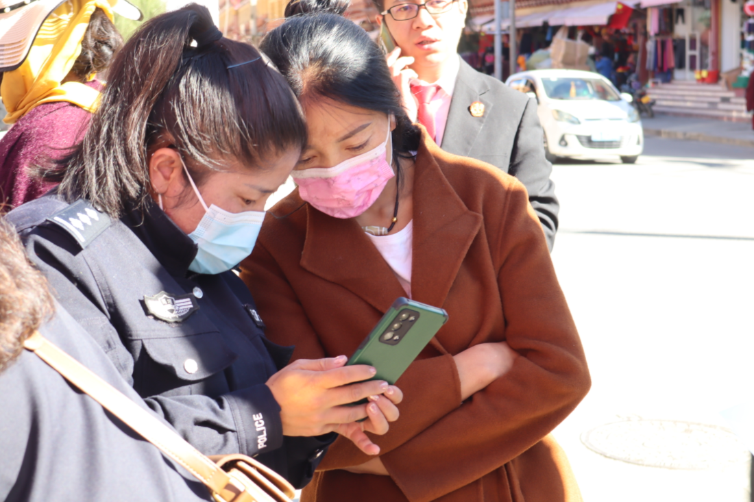 活动期间,由县公安局、司法局、检察院、法院以及团委的宣讲员和志愿者向过往的农牧民群众发放包括《网络安全法》等涉及网络安全的法律法规的宣传品,并向农牧民群众讲解如何安全上网和保护个人隐私,部分群众还在宣讲员的指导下安装了“国家反诈中心”APP。为了更进一步的做好网络安全和反诈骗宣传,宣讲员和志愿者还进入到临街商铺进行宣传宣讲。