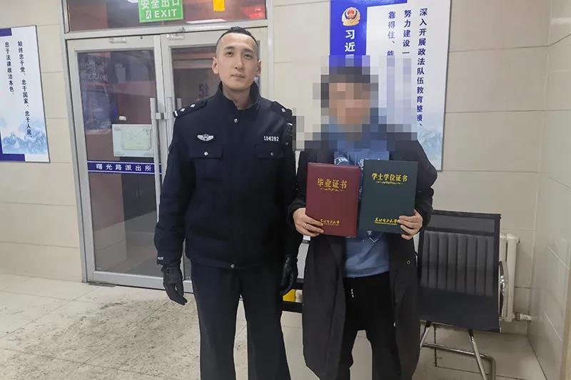 2月11日21时许,市民周先生来到长春市公安局南关区分局曙光路派出所,从民警手中接过自己失而复得的毕业证书和学位证书,激动地说:“找回证书真是帮我大忙了,太感谢你们了!”