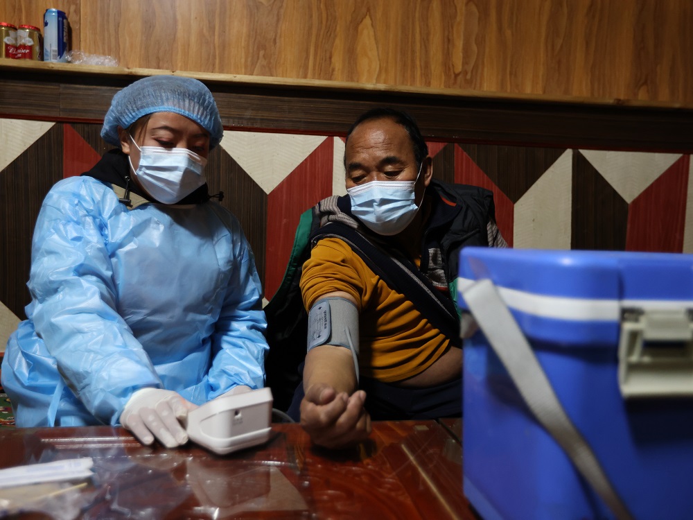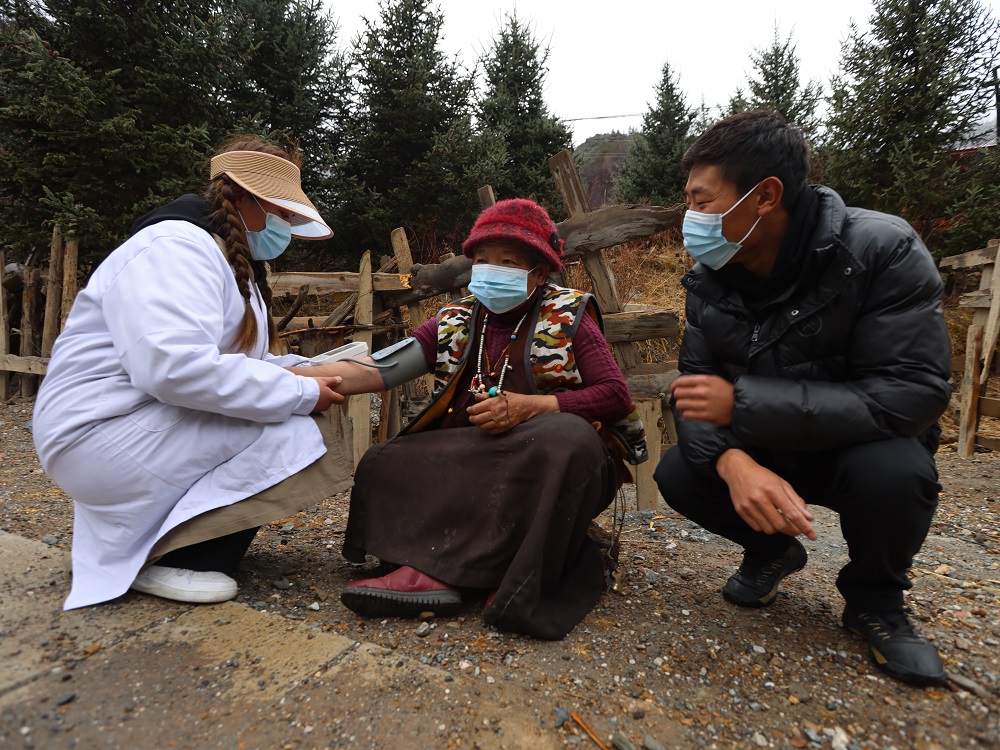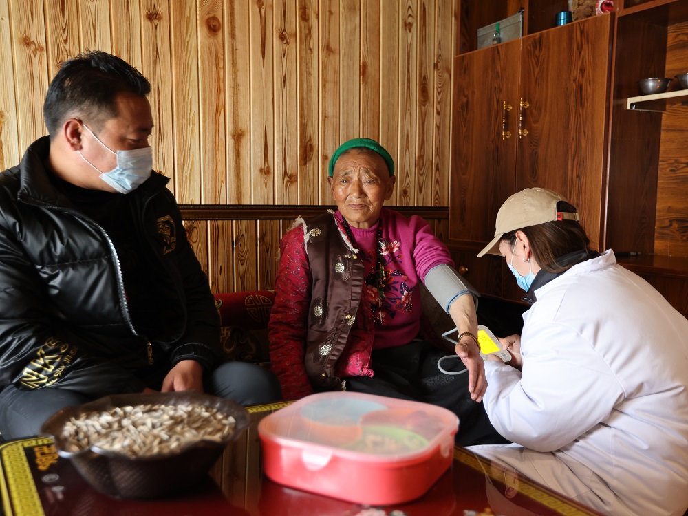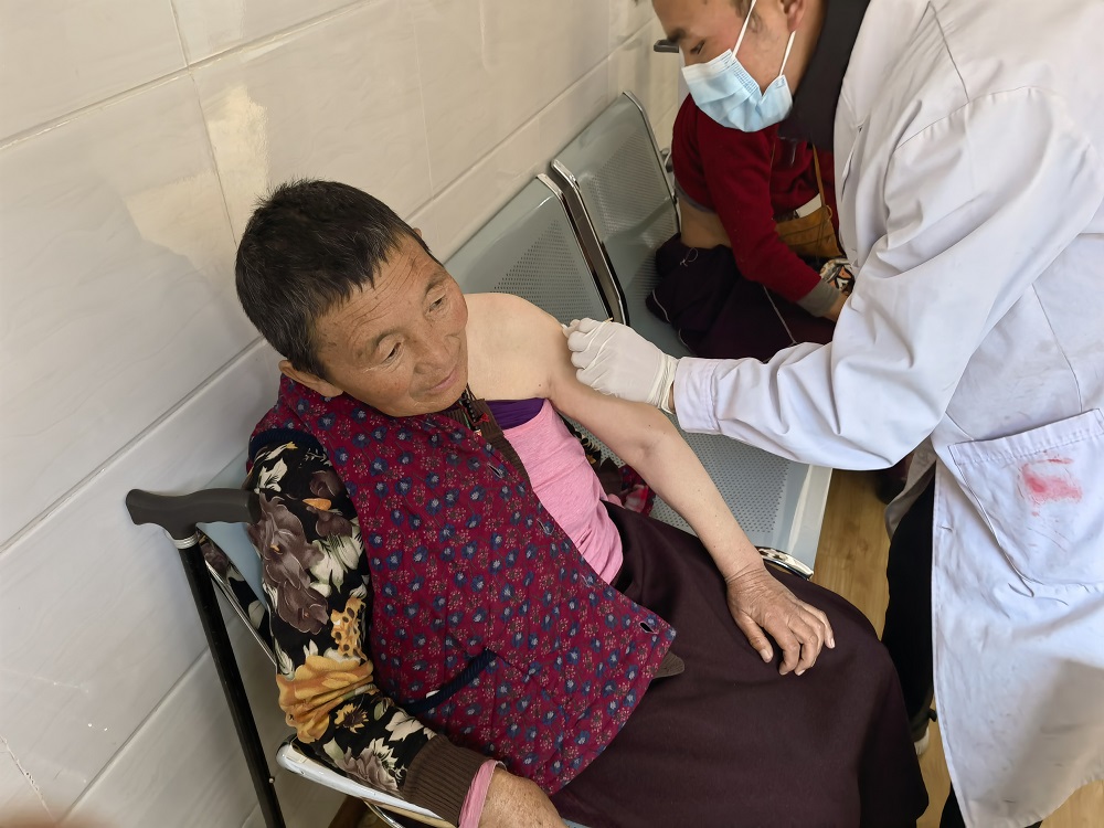 今年72 岁的巴珍是绒盖乡协达村的五保户,早年丧夫又膝下无子的她常年独居一人,备受绒盖乡党委政府的关心与关注。由于年事已高,体弱多病的她患有高血压,如何让巴珍顺利接种新冠疫苗成了党委政府头大的事情。最终决定先让老人通过适量用药控制血压,同时专程安排医务人员每天上门为老人测量血压,时刻关注其身体状态,确保老人身体状况能够接种疫苗时能够及时上门为其接种疫苗。