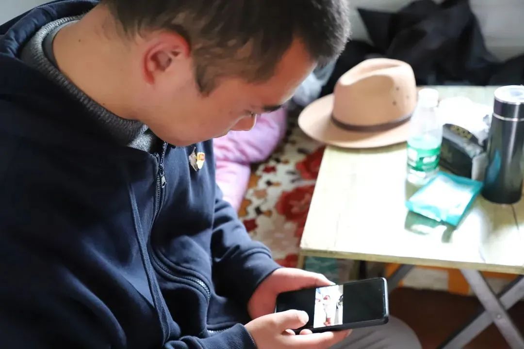 低矮的房屋与高高的海拔、简陋的生活设施与干部良好的精神状态、艰苦的环境与飘扬的国旗形成鲜明对比,在虫草山上缺氧和阴晴不定的天气是家常便饭,“没电没网没信号”更是让这里几乎与世隔绝,记者看到盖玉镇副书记杨丹萍正拿着卫星电话与家人通话,由于长时间不能通过视频看见儿子,他一有空便坐在床边开始翻看儿子的视频,看见儿子可爱的笑脸,全身便充满了工作的力量。