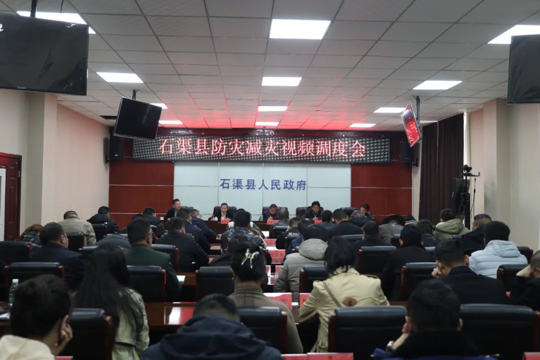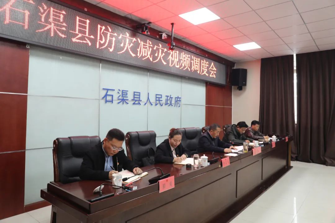 石渠县在政务中心四楼会议室召开2022年度防灾减灾视频调度会。