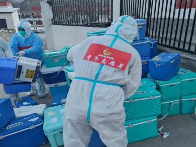 “天使白”筑起牢固“防疫墙”。自疫情发生以来,全市502名医护工作者纷纷积极响应号召、挺身而出,身披“白甲”,奔赴抗击疫情最前线进行核酸采样、核酸检验、核酸样本转运等工作,力求以最快的速度阻断疫情传播链。自开展静态管理以来,他们分秒必争,与时间赛跑,每天清晨5:30,他们到达点位后立即准备好物资,换好防护服,一个个“大白”就位开始采样。他们以规范的工作标准、严谨的工作流程,每日完成12000余人的采样工作,用专业守护群众健康。当有些市民群众因年纪大行动不便不能前来采样时,医护人员立即上门进行采样,确保核酸检测不落下一人,谱写了医疗战“疫”的动人乐章。