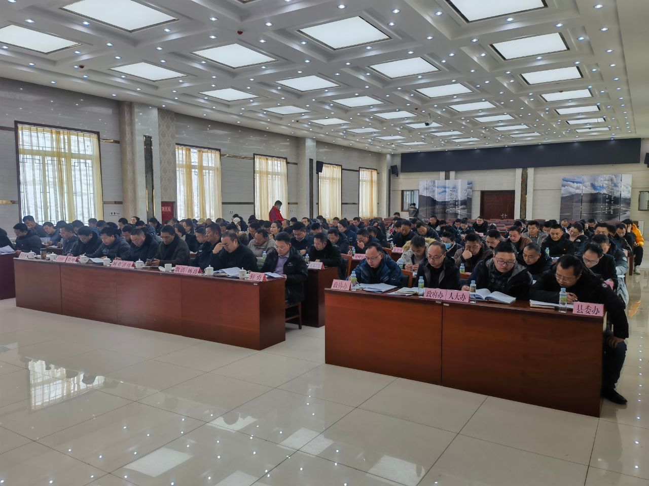 各工委主任,寺管会负责人,乡(镇、场)党委书记;县级机关各单位和省州属驻县各行政、企(事)业单位负责人参加会议。