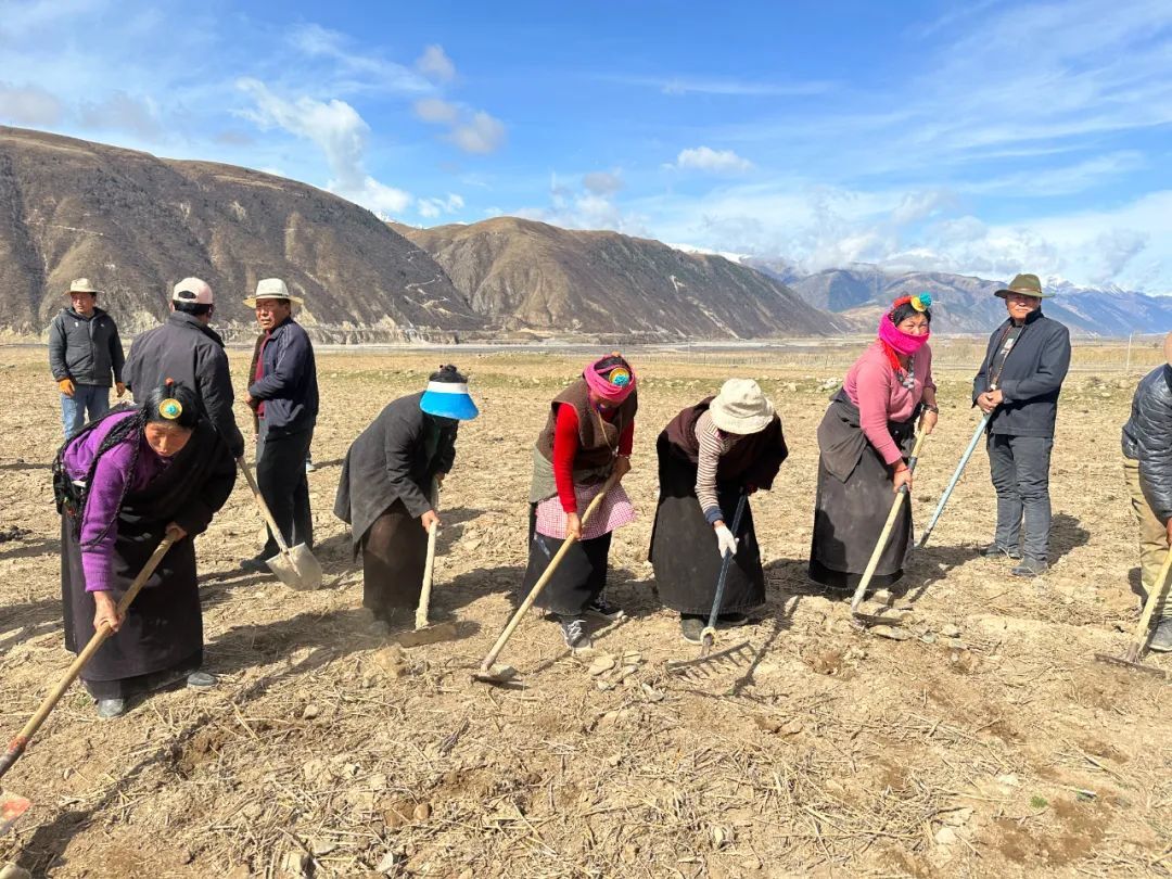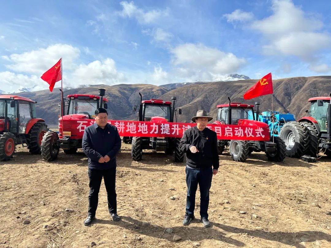 在捡石现场,一面面五星红旗和党旗插迎风飘扬,农牧民群众开着捡石机在田间地头来回穿梭,机器轰鸣声不绝于耳,同时,农牧民群众还通过“人工捡石”的方式提升地力条件,县农牧农村局专业技术人员还具体参与指导,通过地力提升、有机施肥,群众喜闻乐见的方式,切实打造了2023年青稞小麦高产示范区域,进一步提高粮食产量和耕地地力条件。