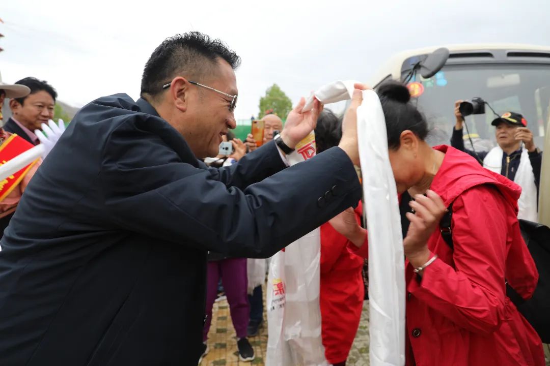 “一路远道而来,您们辛苦了!欢迎回家!”州政协副主席、县委书记罗林向代表团致以最亲切的问候,并为代表团敬献哈达。