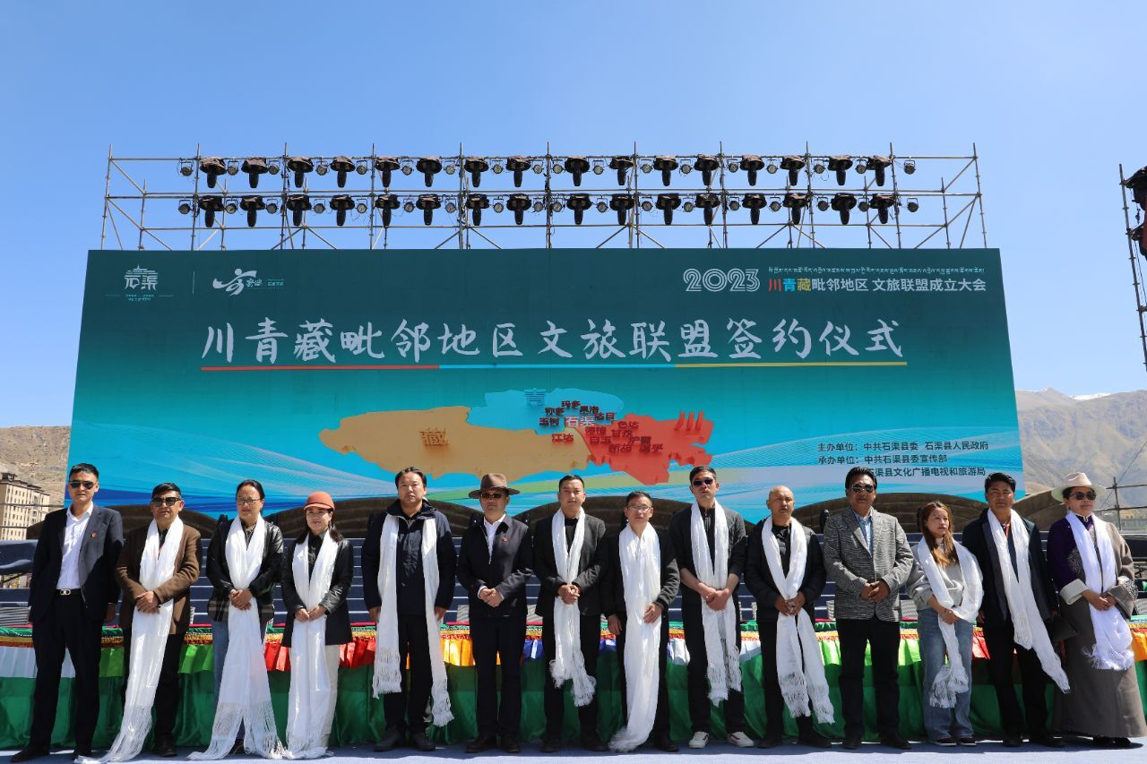 西藏自治区昌都市,青海省玉树州、果洛州、玉树州玉树市、称多县、玛多县、达日县、江达县,甘孜州德格县、甘孜县、白玉县、新龙县、炉霍县、色达县、道孚县、石渠县的16家文旅部门在大会上共同签订了川青藏毗邻地区文旅联盟协议。