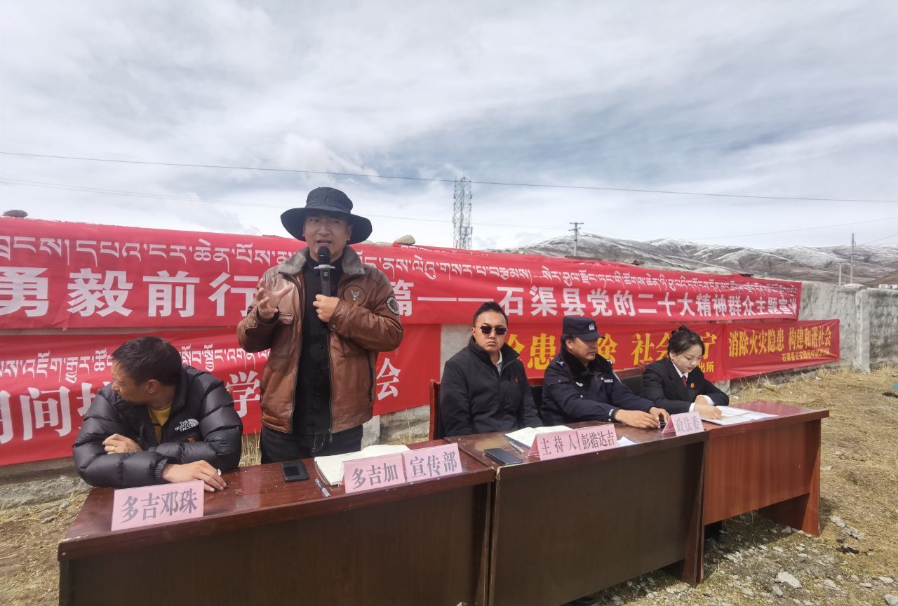县委宣讲员多吉加 今天我们石渠县委宣讲团来到尼呷镇,宣传党的二十大精神。我们主要围绕“江山就是人民,人民就是江山,我们党的百年奋斗史就是为人民谋幸福的历史。”以人民为中心,以发展为导向,以幸福为目标,把党的声音带给基层群众。努力把人民群众的生活更上一层楼。