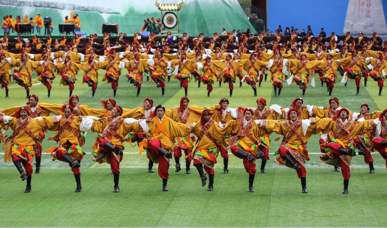 代表56个民族的演员、30名身穿民族特色服饰的背水姑娘、6000余人组成的大型群众演员,开幕式将在声势浩荡的激歌热舞中“点燃”。近千名骑士驾乘骏马,拾哈达、耍马技、乘马射击,展现马背民族风采。千名牧民演员以“舞蹈+剧情”式演出,重现当年文成公主进藏盛况!