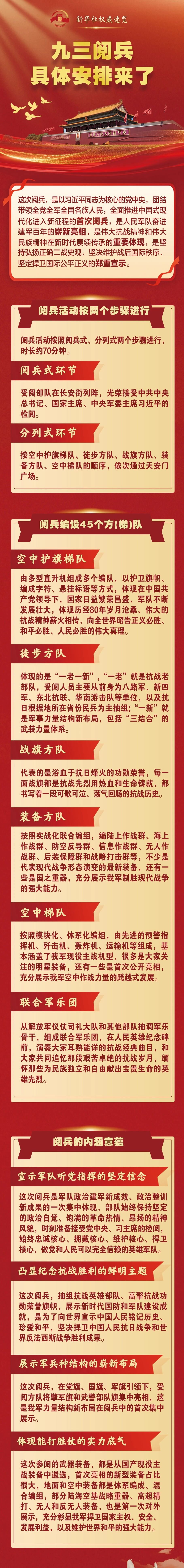 国务院新闻办公室8月20日举行新闻发布会,介绍阅兵准备工作有关情况。这张长图,带你了解九三阅兵具体安排。