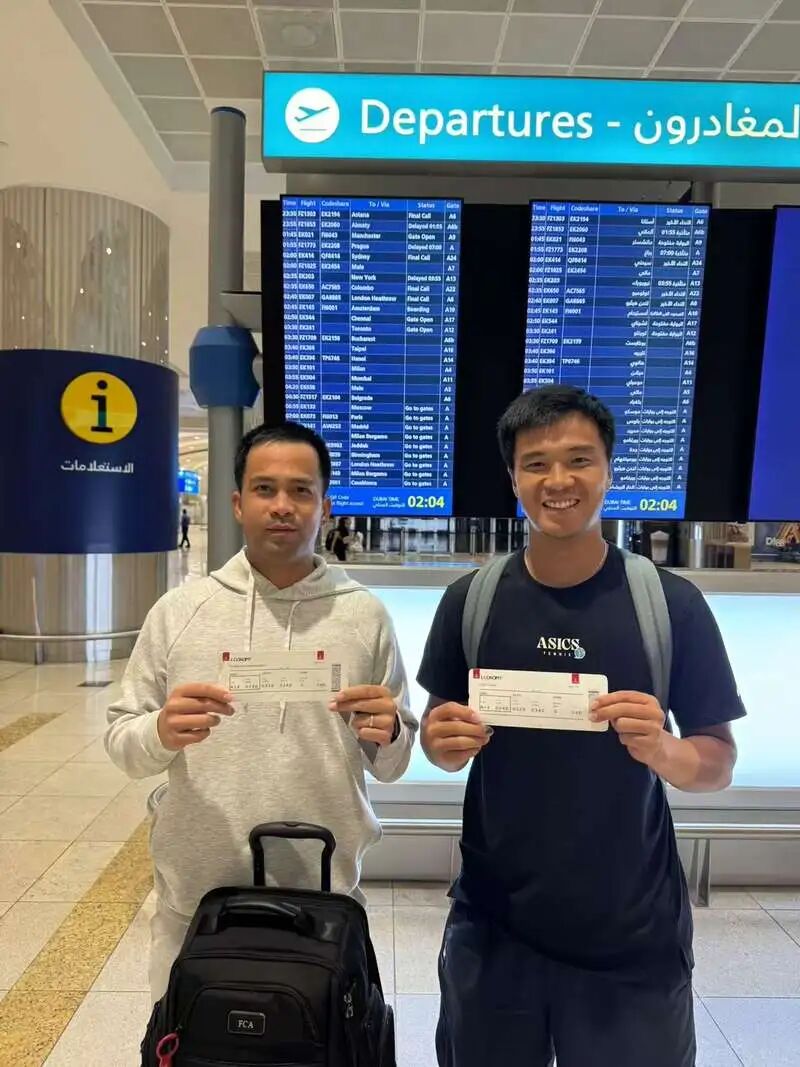 社交媒体上,孙发京记录了此次富查伊拉之行的各种意外,引发网友关注。有网友建议他关注迪拜国际机场官网,能明确看到有哪些航班正常进出港。他便把这些航班信息梳理出来,发现飞往广州、香港、台北、曼谷、河内等地的航班都顺利执飞,于是决定尝试从迪拜回国,大多数亚洲球员也都选择了这些路线。经过多轮抢票成功又被取消后,他们终于抢到了3月5日迪拜飞河内的机票,经济舱每人5000多元,从河内回北京也只需要2000多元。