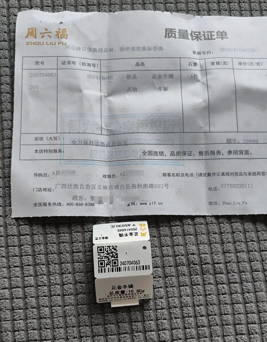 3·15维权|39999元金手镯退款遭拒,我们介入后,周六福退了