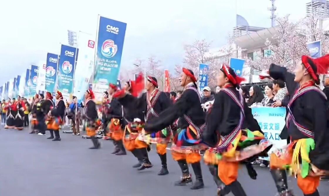 3月28日开幕式当晚,上百名演职人员倾情演绎非遗舞蹈和藏族歌曲,融合了“生命树”等文化元素的巨型TIFO将现场氛围推向高潮。3月31日,玉树歌舞剧团在岱岳区刘老根大舞台带来国家级非物质文化遗产“伊舞”《吉祥玉树》的沉浸式快闪表演,经典民族歌曲《高原红》婉转回荡,在现场圈粉无数。