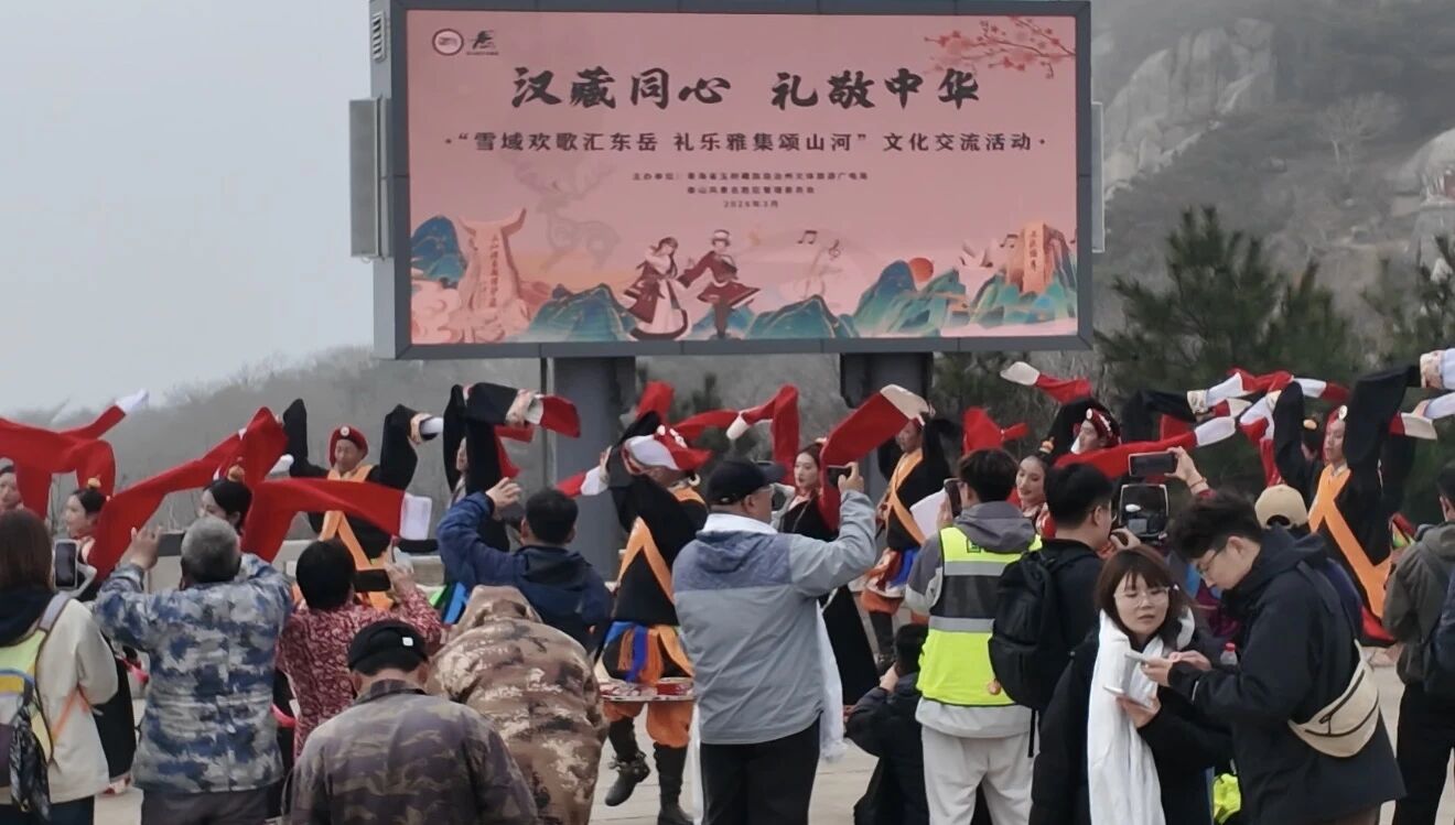 更令人瞩目的是,玉树州还将文化交流的舞台搬上了泰山之巅。玉树文艺工作者与泰山职业技术学院泰山雅乐团师生在玉皇顶共同举办“雪域欢歌汇东岳 礼乐雅集颂山河”文化交流活动。藏族歌舞与泰山古诗文吟诵交相辉映,汉藏两地文艺表演者携手互动、同台演绎,生动彰显了汉藏同心、礼敬中华的深厚情谊。泰山雅乐团领队刘欣荣说:“希望用我们的舞蹈和歌声表达‘汉藏同心 礼敬中华’,祝愿祖国繁荣昌盛、国泰民安。”