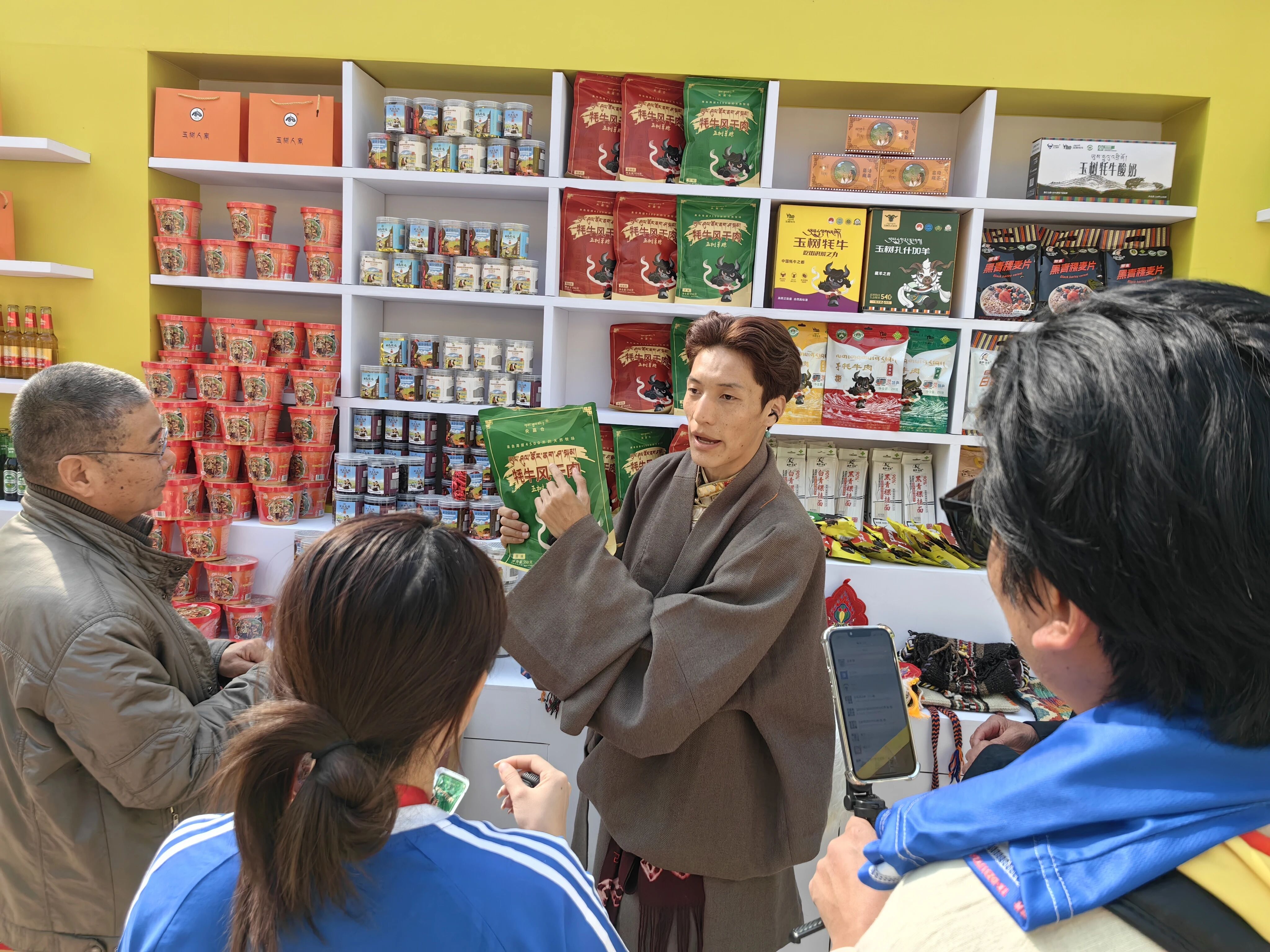赛场内拼搏激烈,赛场外同样热火朝天。在“大美青海 江源玉树 极地臻品”展区,100平方米的展示空间内人头攒动。玉树州精心组织17家重点农旅企业,携玉树牦牛肉、扎什加羊肉、黑青稞制品、芫根等地理标志产品集体亮相。