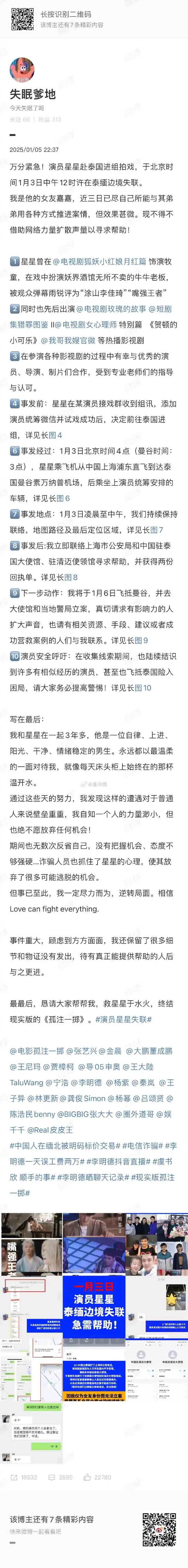 热搜第一!“男演员在泰缅边境失联”,舒淇、姚晨等多位演员发声