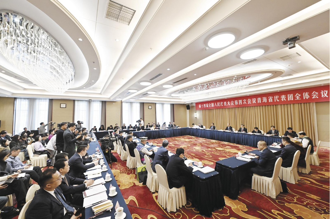 3月6日上午,出席十四届全国人大四次会议的青海代表团举行开放团组会议,吴晓军、罗东川等代表回答中外媒体记者提问