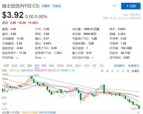 瑞信近年受一系列丑闻困扰,包括Archegos爆仓、Greensill破产、泄密事件等,令公司名声受损,更拖累业绩。其股价自去年二月起一蹶不振,从14.90美元跌至周五收市的3.92美元。