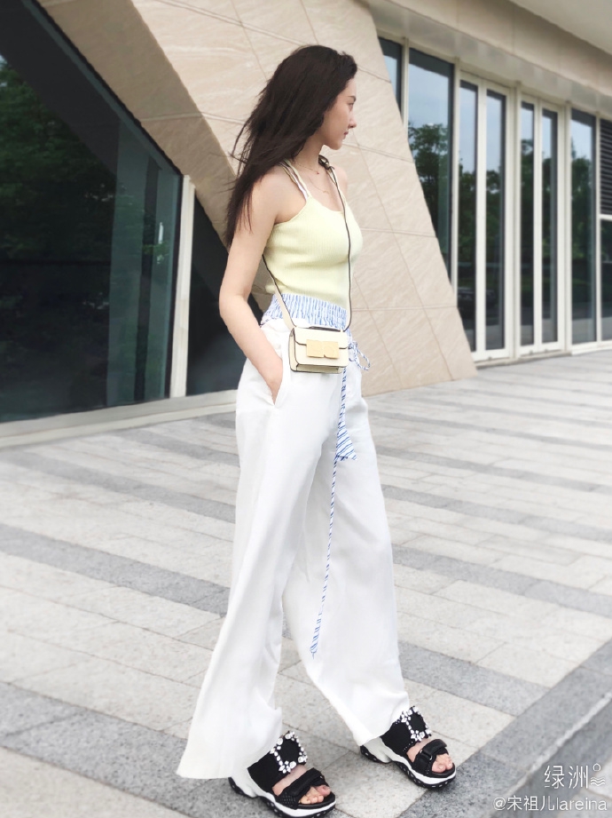宋祖儿穿鹅黄色背心 搭配白色阔腿裤清凉夏日
