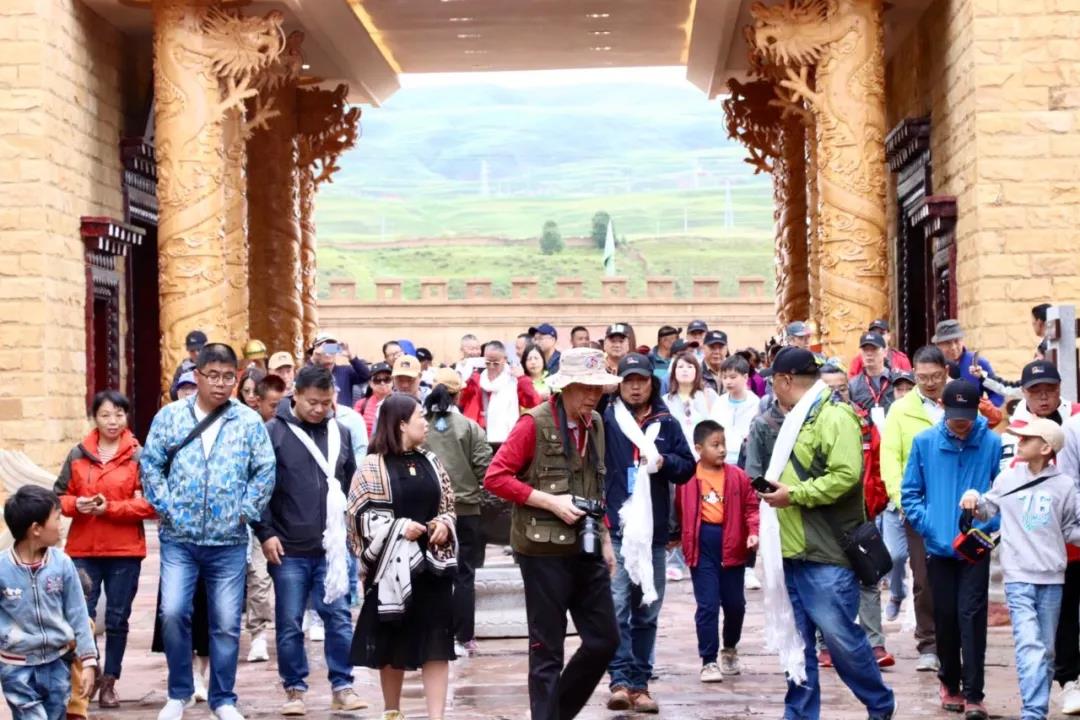 7月20日上午丝路甘孜康藏秘境自驾游团队50辆车队168人在格萨尔王城门集结