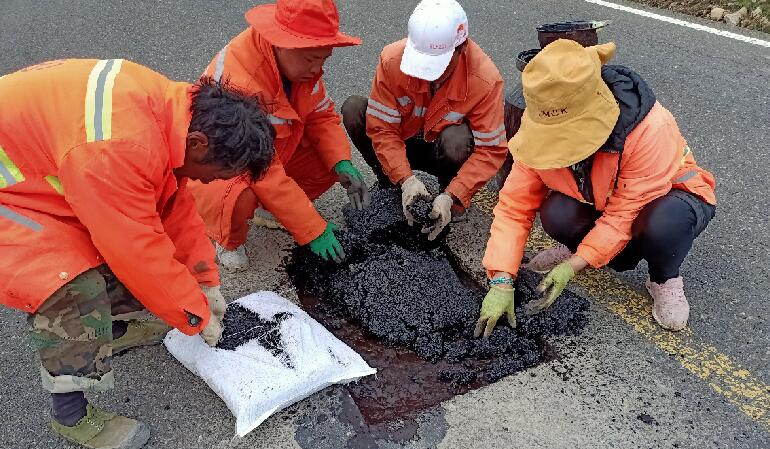为保障群众出行安全,白玉公路分局抢抓有利天气、合理安排、组织养护力量。6月初,白玉公路分局工作人员全面开展甘白公路路面坑凼修补工作。