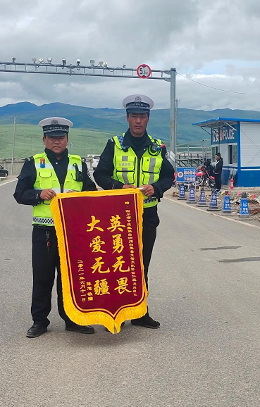 近日,战斗在卡点查缉一线的白玉县公安局辅警泽翁仁真和尼玛泽仁收到了一件从深圳寄来的“神秘”包裹,打开一看,是一面印有“英勇无畏 大爱无疆”的鲜红锦旗。