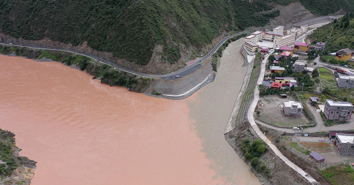 甘孜白玉:两江交汇现“泾渭分明”奇观 一清一浑变“鸳鸯锅” 江畔金沙金沙乡灾后重建初见成效