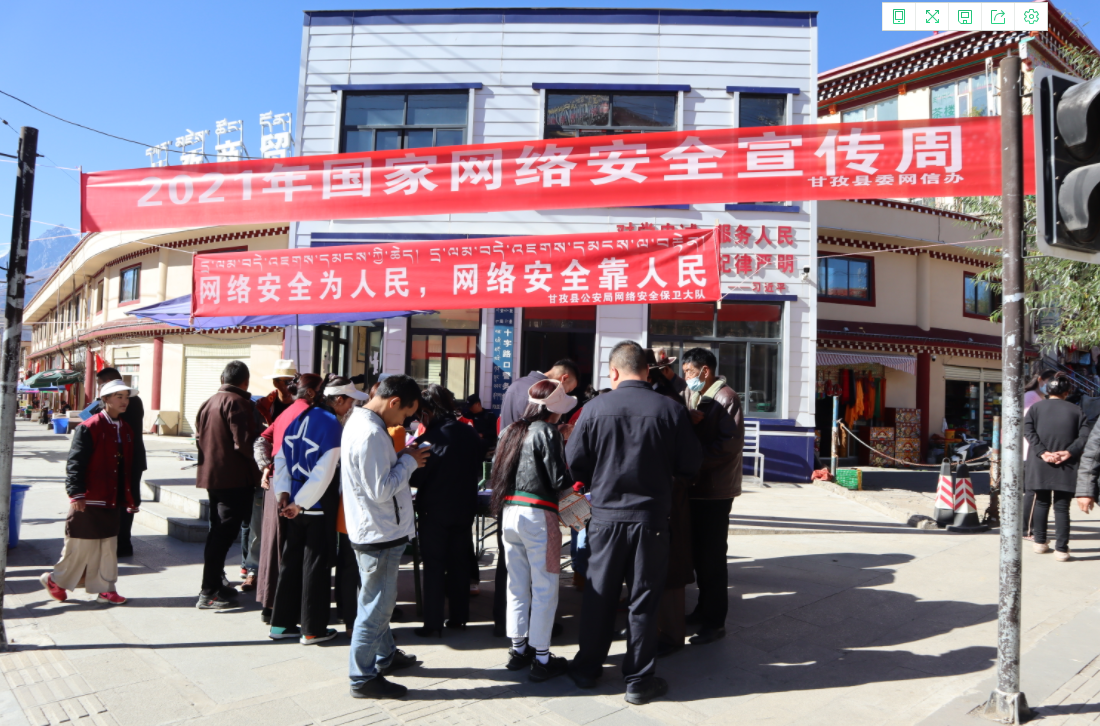 10月11日上午,在甘孜县解放街十字路口开展了“ 2021年国家网络安全宣传周活动”,标志着今年国家网络安全宣传周活动在甘孜县正式拉开序幕,本次网络安全宣传周以“网络安全为人民,网络安全靠人民”为主题。