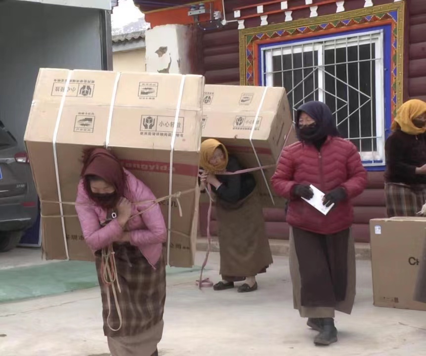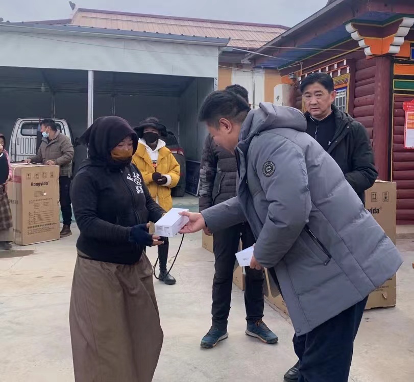 活动为觉日村村民代表发放了洗衣机、电视、手机等礼品。