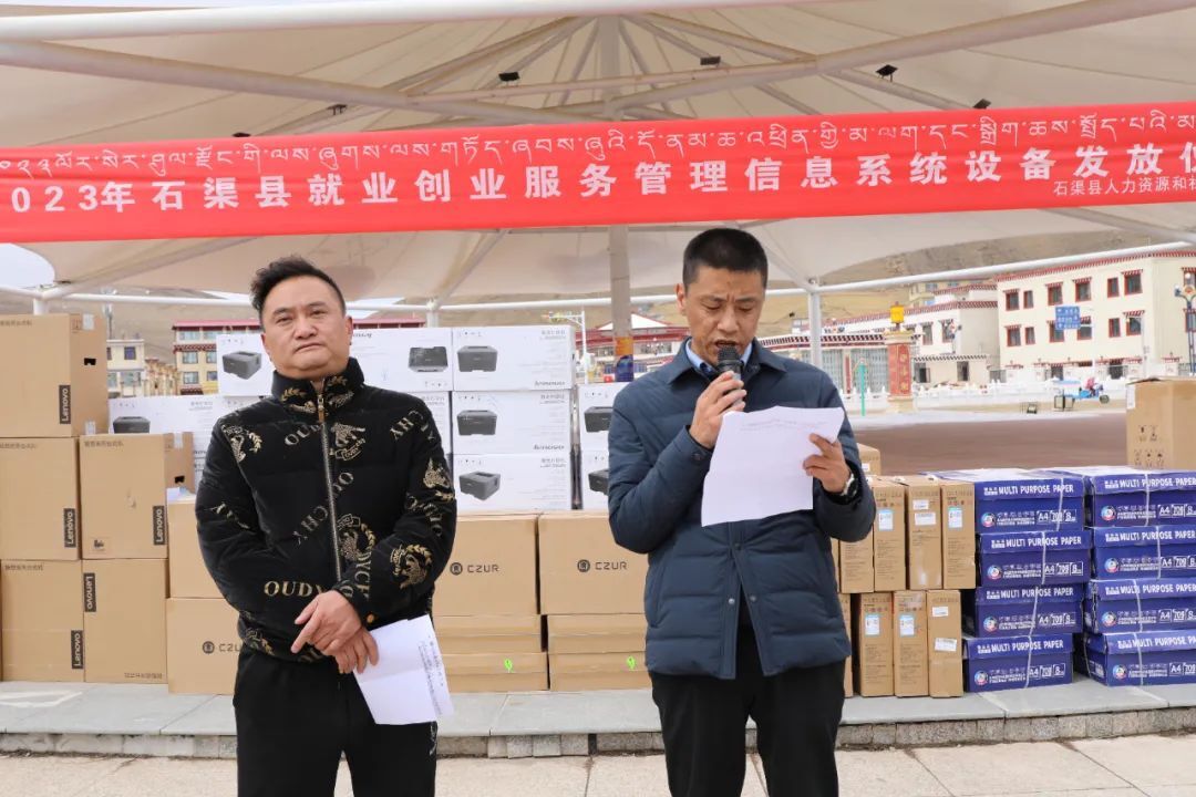 3月30日,2023年石渠县就业创业服务管理信息系统设备发放仪式在石渠县锅庄广场举行。