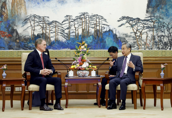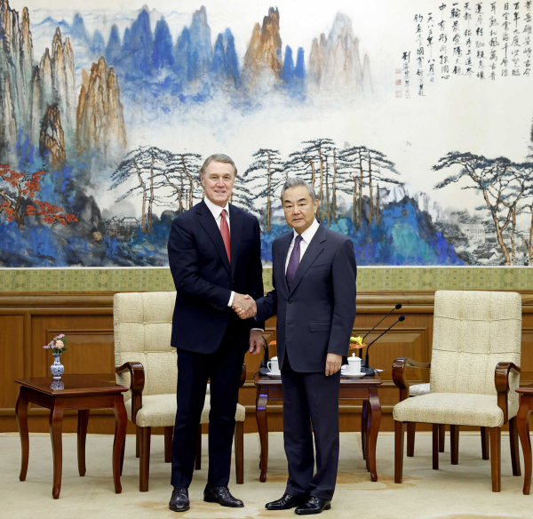 据外交部网站消息,2025年6月3日,中共中央政治局委员、外交部长王毅在京会见美国新任驻华大使庞德伟。