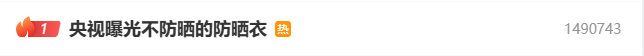 据消息,6月8日晚,总台栏目播发“谁在炮制假防晒衣”的报道。9日,话题“央视曝光不防晒的防晒衣”登上热搜第一。