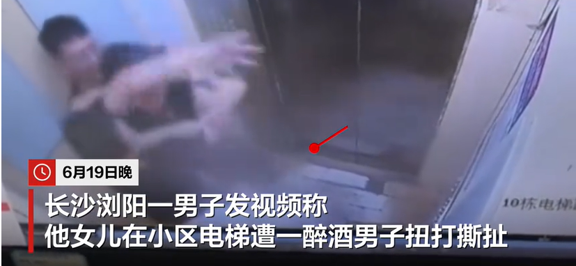 6月19日晚,长沙浏阳一男子发视频称,他女儿在小区电梯遭一醉酒男子扭打撕扯,看到监控后他彻夜难眠,他报警后醉酒男子被警方带走。