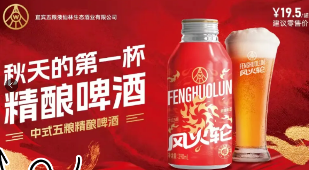 五粮液回应跨界卖啤酒:是子公司产品,名为“风火轮”,每罐19.5元;此前珍酒李渡也下场卖啤酒,1瓶88元
