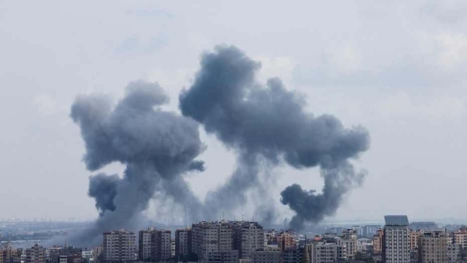 图为当地时间2023年10月10日,加沙地带遭空袭,滚滚浓烟涌出。