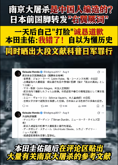 日本前国脚为否认南京大屠杀道歉