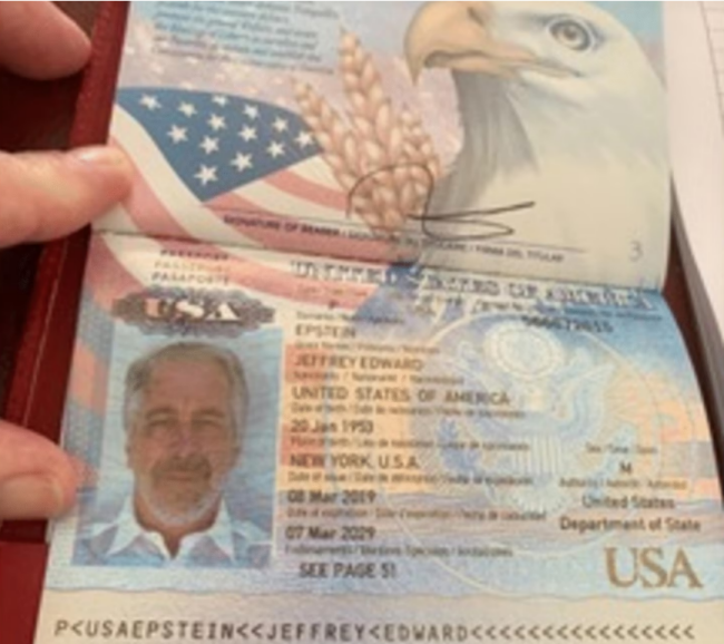 其他公布的照片还包括:爱泼斯坦于2019年3月签发的最后一本美国护照,护照中注明其曾因针对未成年人的性犯罪被定罪的记录;以及一张爱泼斯坦面带微笑、与一名身穿类似美国海关与边境保护局制服的人员握手的照片等等。