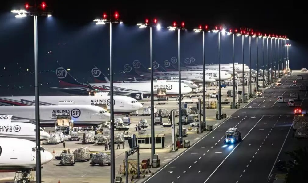 2022年7月,亚洲第一个专业货运枢纽机场——鄂州花湖机场建成投运,利用其“1.5小时飞行圈”可达京津冀、长三角、粤港澳大湾区三大城市群的优势,与物流巨头顺丰紧密合作,目前已开通国内、国际货运航线百余条,今年前三季度完成货邮吞吐量108万吨。