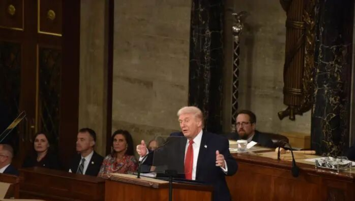 当地时间2月24日晚,美国总统特朗普在国会参众两院联席会议上发表国情咨文讲话,聚焦经济、移民等议题。这是特朗普在本总统任期内首次发表国情咨文。